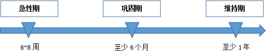 鞏固期需維持急性期所用的有效藥物治療至少6個月,以防止已緩解的癥狀復發。同時,還需進一步緩解癥狀,促進恢復。